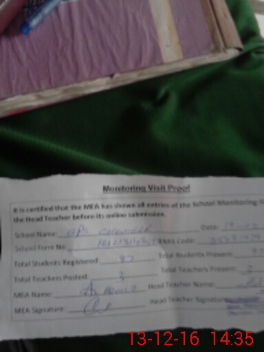 | Attendance Register | Head Teacher | MEA with School | Visit Proof |