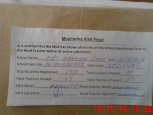 | Certified that this School was Inspected by the Undersigned MEA/DMO Today and the Information Stated Above is as Per Record. | |||||