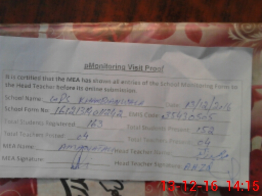 | Certified that this School was Inspected by the Undersigned MEA/DMO Today and the Information Stated Above is as Per Record. | |||||