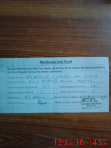 | Certified that this School was Inspected by the Undersigned MEA/DMO Today and the Information Stated Above is as Per Record. | |||||