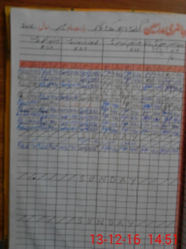 | CNIC | Full Name | Designation | R/C | Absence During Last Calender Month |
