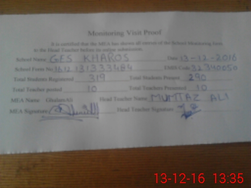 | Certified that this School was Inspected by the Undersigned MEA/DMO Today and the Information Stated Above is as Per Record. | |||||