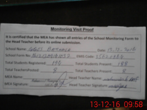 | Attendance Register | Head Teacher | MEA with School | Visit Proof |
