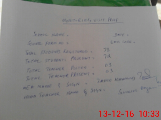 | Attendance Register | Head Teacher | MEA with School | Visit Proof |