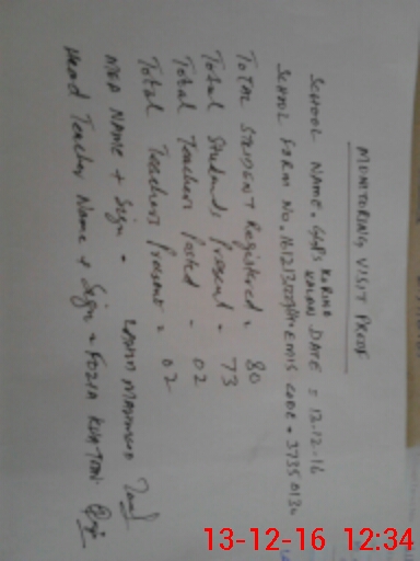 | Attendance Register | Head Teacher | MEA with School | Visit Proof |