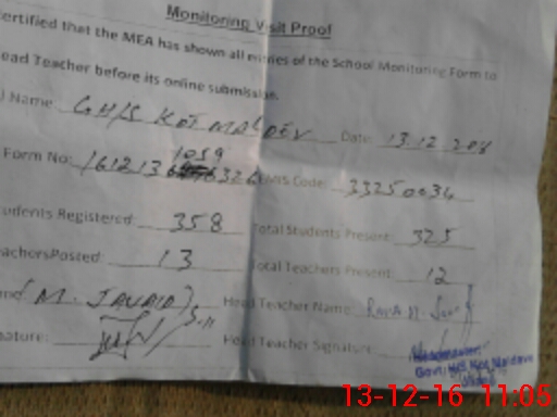 | EMIS Code: 33250034 | Name of School: GHS KOT MALDEV | |||