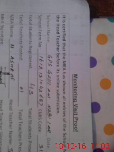 | Certified that this School was Inspected by the Undersigned MEA/DMO Today and the Information Stated Above is as Per Record. | |||||