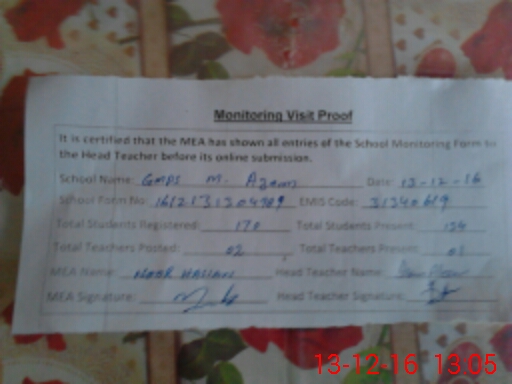 | EMIS Code: 31340619 | Name of School: GMPS BASTI MUHAMMAD AZAM | |||