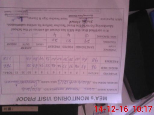 | Monitoring Date: 14-12-2016 | Start Time: 14-12-2016 08:26 AM | End Time: 14-12-2016 10:20 AM | Name of MEA: SH**** AH**** | |