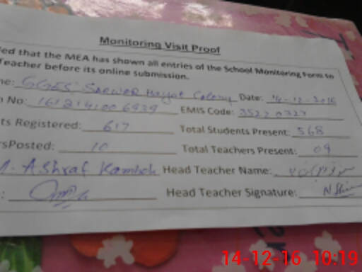 | EMIS Code: 35220327 | Name of School: GGHS SARWAR HAYAT COLONY (Newly upgraded) | |||