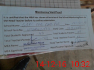 | Attendance Register | Head Teacher | MEA with School | Visit Proof |