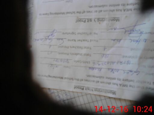 | Monitoring Date: 14-12-2016 | Start Time: 14-12-2016 10:08 AM | End Time: 14-12-2016 10:31 AM | Name of MEA: Gh**** Mu**** | |