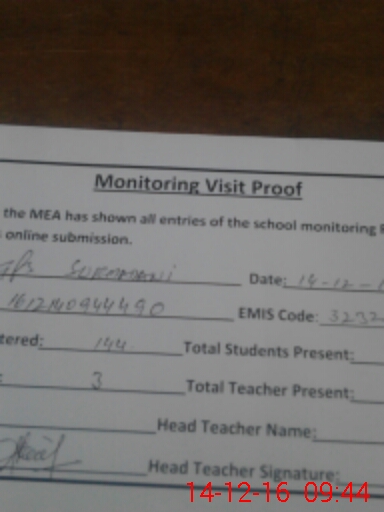 | Attendance Register | Head Teacher | MEA with School | Visit Proof |