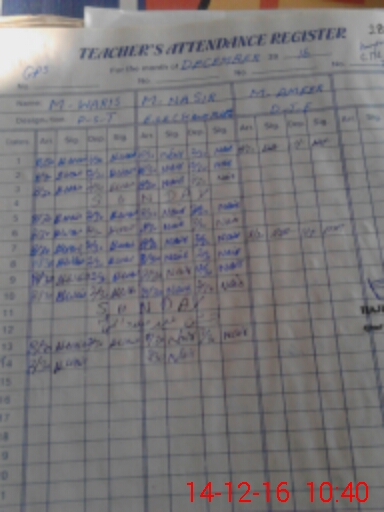 | CNIC | Full Name | Designation | R/C | Absence During Last Calender Month |