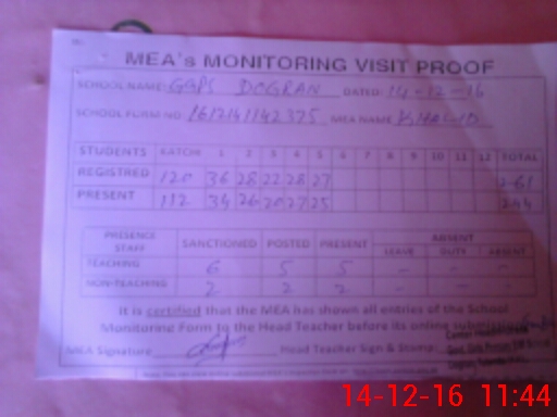 | EMIS Code: 36430352 | Name of School: GGPS DOGRAN, TULAMBA | |||