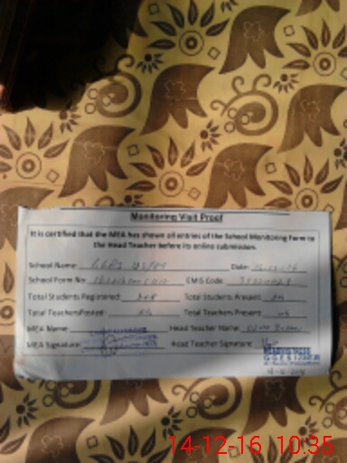 | Attendance Register | Head Teacher | MEA with School | Visit Proof |