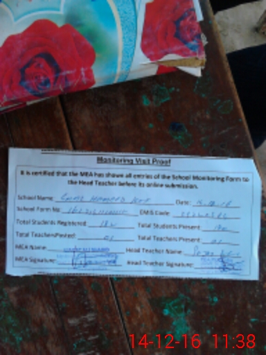 | Attendance Register | Head Teacher | MEA with School | Visit Proof |