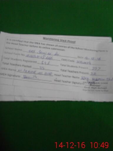 | Certified that this School was Inspected by the Undersigned MEA/DMO Today and the Information Stated Above is as Per Record. | |||||
