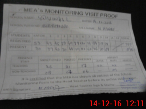 | Attendance Register | Head Teacher | MEA with School | Visit Proof |