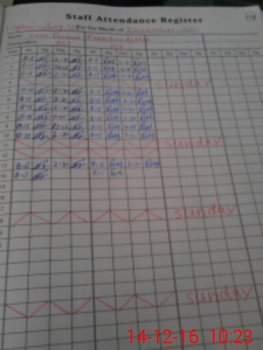 | CNIC | Full Name | Designation | R/C | Absence During Last Calender Month |