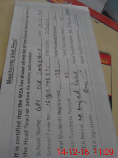 | Certified that this School was Inspected by the Undersigned MEA/DMO Today and the Information Stated Above is as Per Record. | |||||