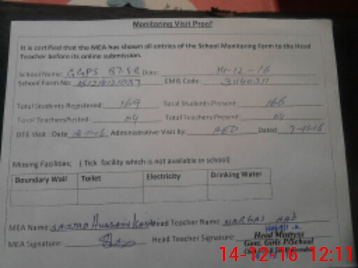 | Certified that this School was Inspected by the Undersigned MEA/DMO Today and the Information Stated Above is as Per Record. | |||||