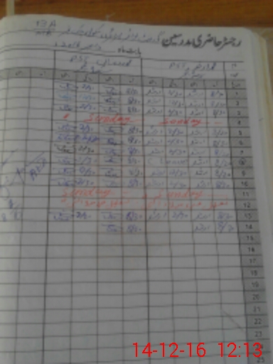 | CNIC | Full Name | Designation | R/C | Absence During Last Calender Month |