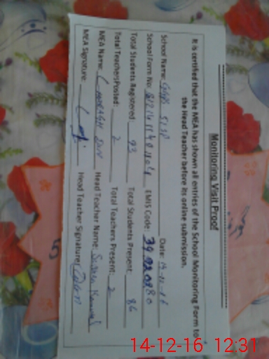 | Certified that this School was Inspected by the Undersigned MEA/DMO Today and the Information Stated Above is as Per Record. | |||||