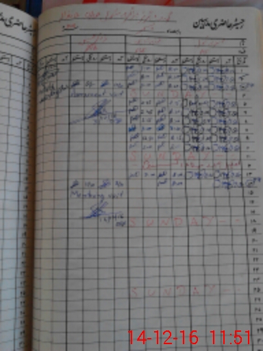 | CNIC | Full Name | Designation | R/C | Absence During Last Calender Month |