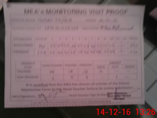 | Attendance Register | Head Teacher | MEA with School | Visit Proof |