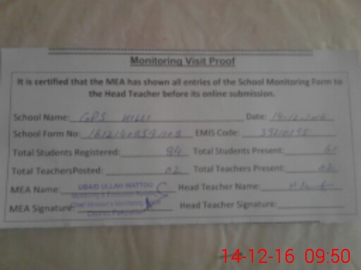 | EMIS Code: 39210195 | Name of School: GPS KILLI PO PAKPATTAN | |||