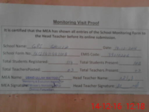 | EMIS Code: 39210206 | Name of School: GPS GHULLA P/O PAKPATTAN | |||
