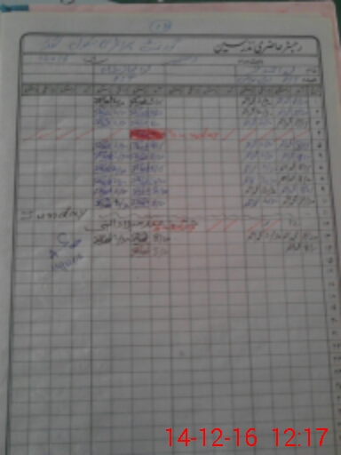 | CNIC | Full Name | Designation | R/C | Absence During Last Calender Month |