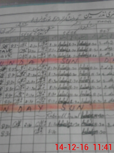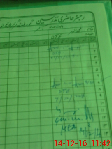 | CNIC | Full Name | Designation | R/C | Absence During Last Calender Month |