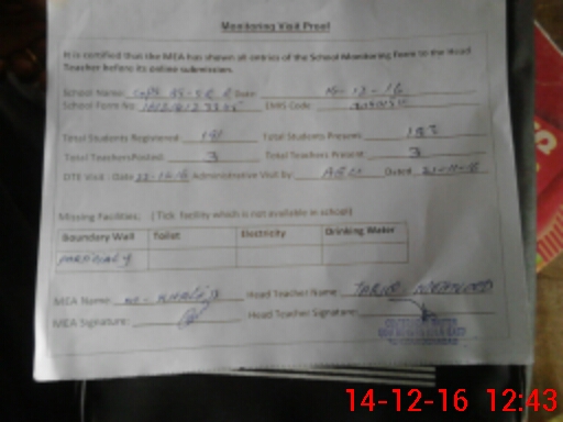 | Certified that this School was Inspected by the Undersigned MEA/DMO Today and the Information Stated Above is as Per Record. | |||||