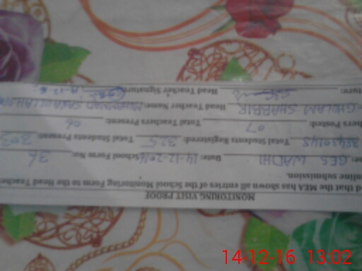 | Certified that this School was Inspected by the Undersigned MEA/DMO Today and the Information Stated Above is as Per Record. | |||||