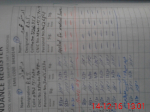 | CNIC | Full Name | Designation | R/C | Absence During Last Calender Month |
