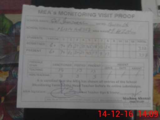 | Certified that this School was Inspected by the Undersigned MEA/DMO Today and the Information Stated Above is as Per Record. | |||||