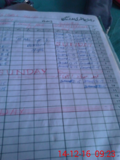 | CNIC | Full Name | Designation | R/C | Absence During Last Calender Month |