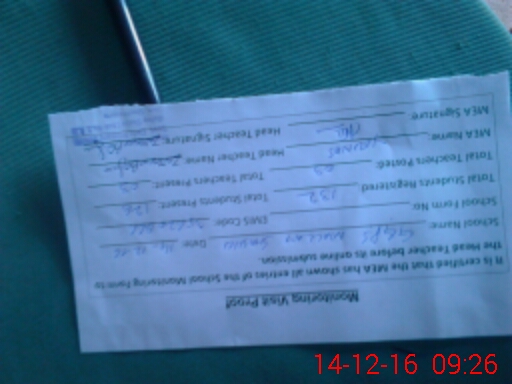 | Attendance Register | Head Teacher | MEA with School | Visit Proof |