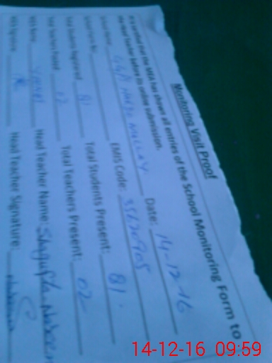 | Attendance Register | Head Teacher | MEA with School | Visit Proof |