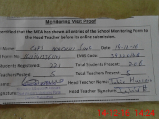| EMIS Code: 39220148 | Name of School: GPS MACHHI SINGH | |||