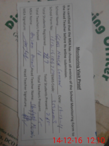 | Certified that this School was Inspected by the Undersigned MEA/DMO Today and the Information Stated Above is as Per Record. | |||||