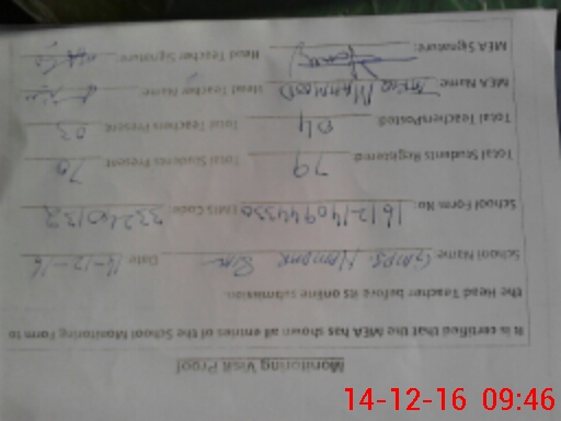 | Attendance Register | Head Teacher | MEA with School | Visit Proof |