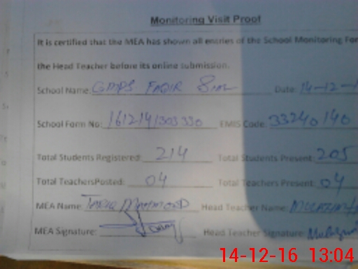 | EMIS Code: 33240140 | Name of School: GMPS FAQIR SIAL | |||