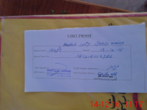 | Attendance Register | Head Teacher | MEA with School | Visit Proof |