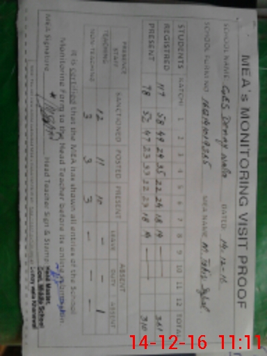 | Attendance Register | Head Teacher | MEA with School | Visit Proof |
