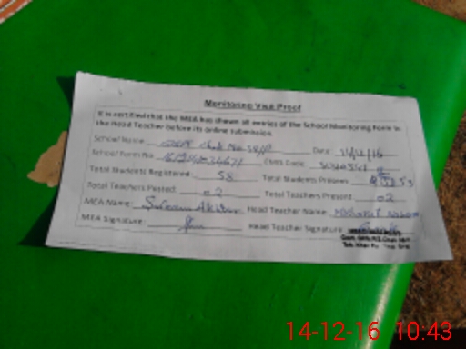 | Attendance Register | Head Teacher | MEA with School | Visit Proof |