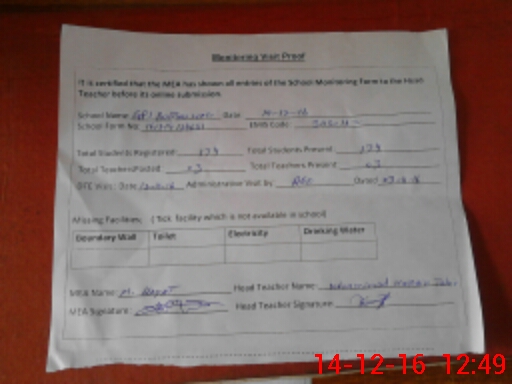 | Attendance Register | Head Teacher | MEA with School | Visit Proof |
