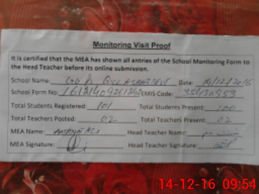 | Certified that this School was Inspected by the Undersigned MEA/DMO Today and the Information Stated Above is as Per Record. | |||||